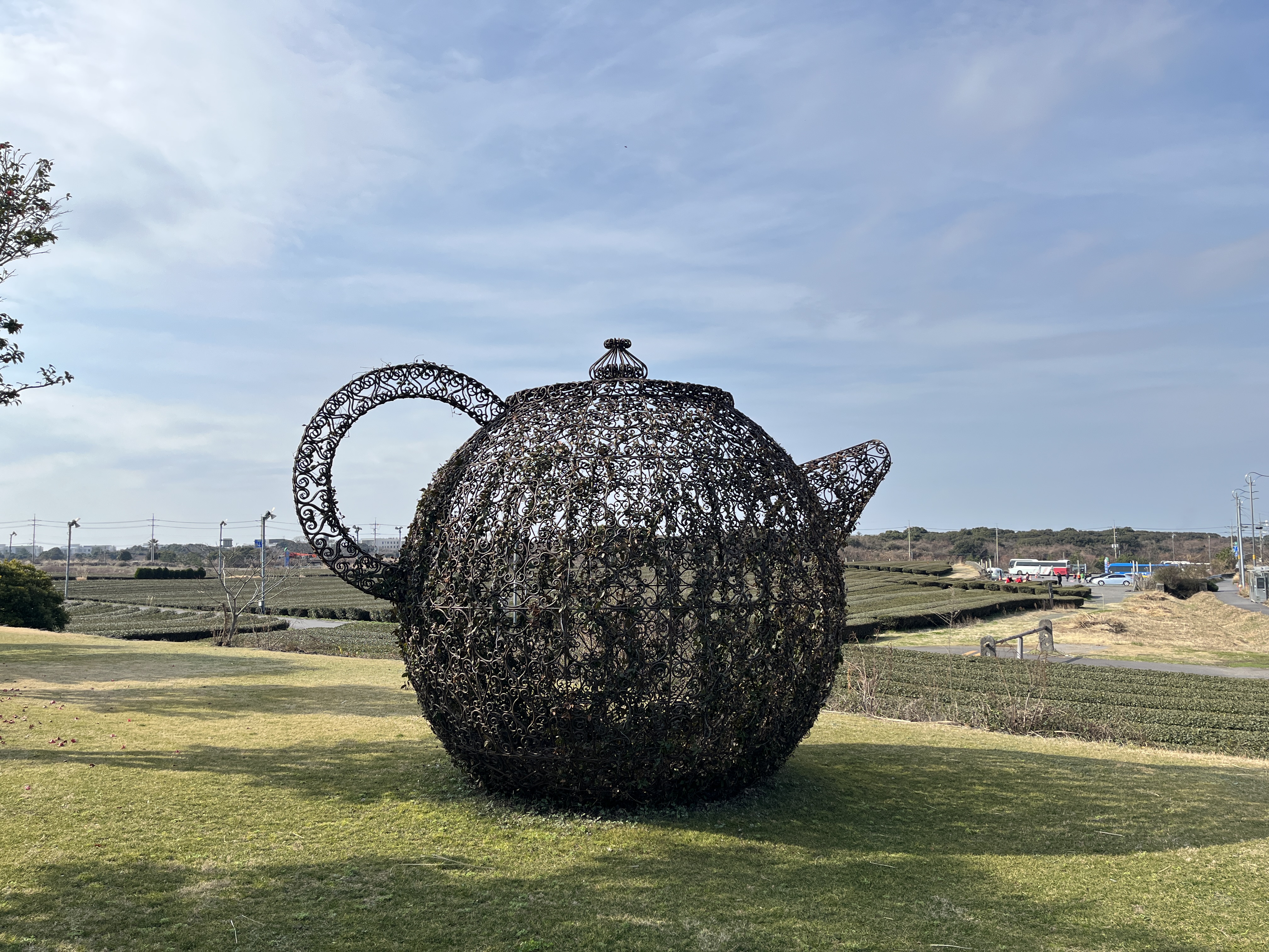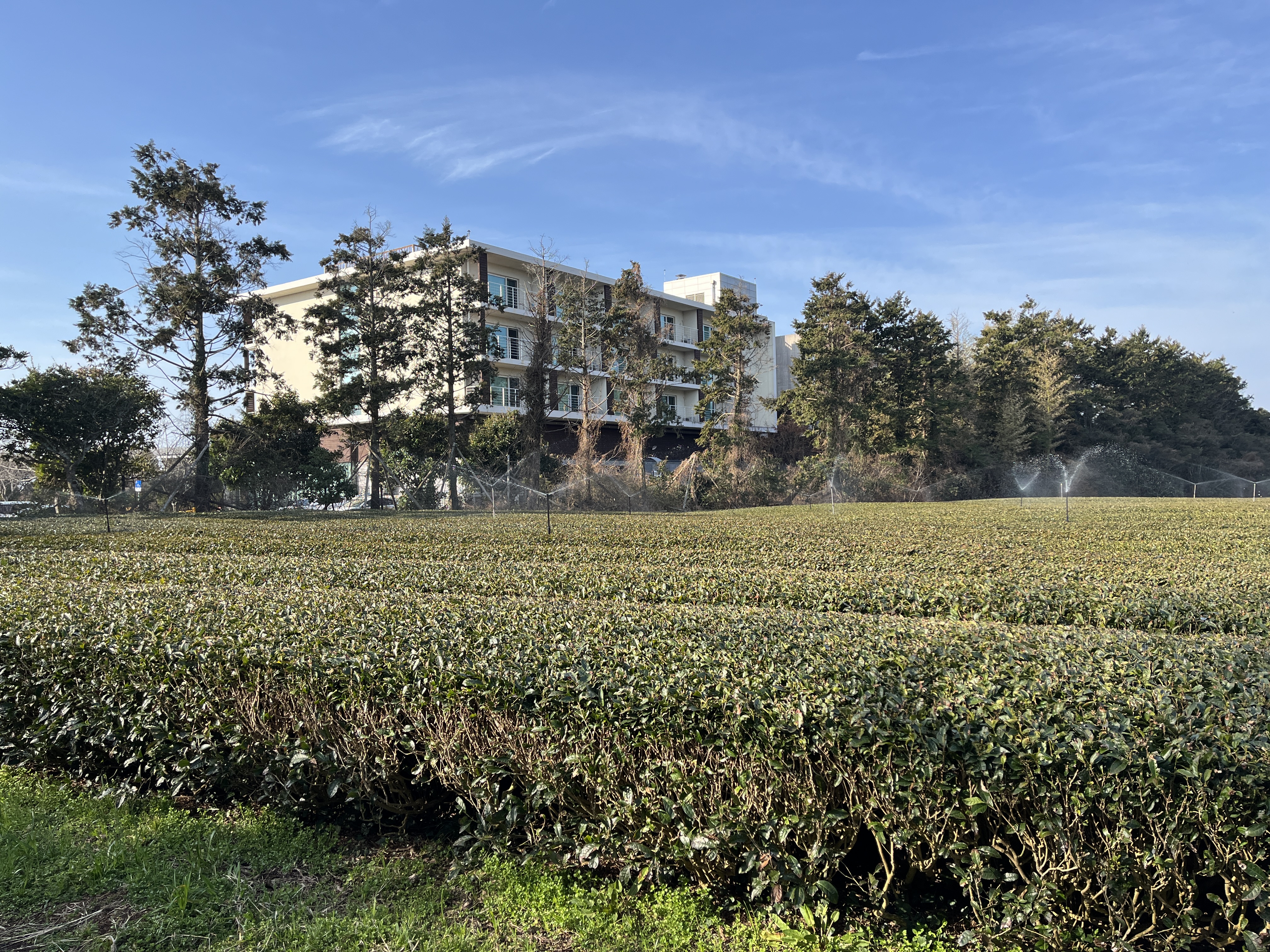나는 조식을 먹은 뒤 숙소 뒤에 나있는 차 밭을 산책하러 나섰다. 지갑도 차 키도 없이 휴대폰만 들고 나섰다. 이른 차 밭은 연신 스프링 쿨러가 회전하고 차 나무에 물을 뿌리고 있었다. 입구부터 물 세례를 맞을라 조심조심 물을 피해서 차 밭에 들어섰다. 아침 공기와 스프링 쿨러에서 나오는 물줄기와 이른 봄의 햇살이 어울려 싱그러운 푸르름이 느껴졌다. 차 밭을 쭉 가로지르자 멀리 숙소가 눈 앞에 보이고, 다른 방향으로 제주 항공우주박물관의 전경도 나타났다. 두 자매 건물을 차 밭에서 바라보는 느낌은 색달랐다. 지도를 살펴보니, 차 밭 끝자락의 대로를 건너면 오설록 매장이 있었다. 내친 김에 오설록까지 갔다왔다. 지갑을 들고 가지 않아 차 선물세트와 이니스프리 화장품 세트 등을 선물로 사올수는 없었지만, 숙소와 오설록이 차 밭 하나를 사이에 두고 있다는 것을 안 것이 신기했다. 차 밭이 주는 신선함을 가득 안고서 숙소로 복귀했다.