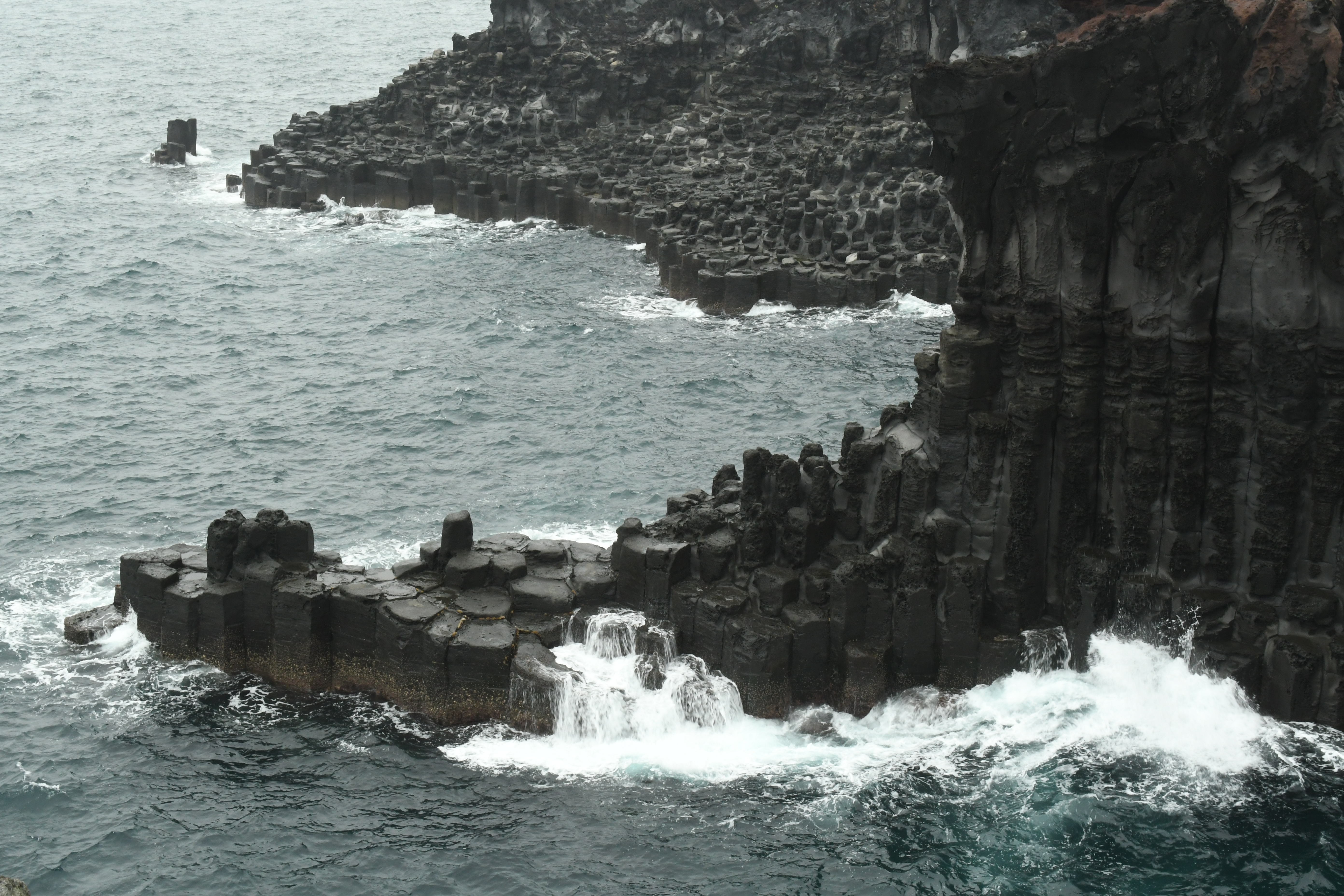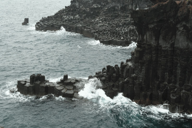 화산과 바다가 빚은 육각기둥들이 장엄하게 울룩불룩 솟아 있고 파도가 부딪혀 하얀 포말을 만들어 장관을 연출했다. 기대했던 것만큼 파도가 크게 치지 않아 높이 솟아 오른 포말 기둥은 볼 수 없었지만 한참 동안 보고 있으니 힐링이 되는 기분이었다.