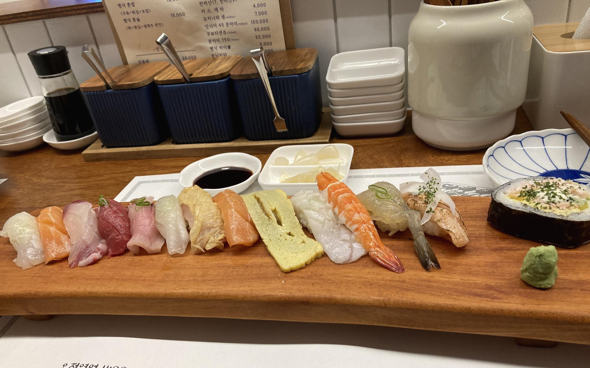 7시쯤 숙소로 돌아왔는데 숙소 아파트 2층에 비둘기가 날아와 죽어 있었다. 깜짝놀랐다. 불길한 징조가 아니길. 주민도 아니면서 관리사무소에 전화를 해 놨다. 밖에 나갔다 돌아오면 치워져 있을까? 기대하지 말자. 어제 저녁을 그지같이 먹어서이기도 하고, 마지막 날이니 저녁은 제대로 먹자고 생각해서 일식 집을 검색했다. 다행히 집 근처에 분위기 괜찮은 일식집이 있다고 해서 찾아가게 되었다. 벵삭이라는 곳이었는데, 미니멀한 분위기에 일본에 온 듯한 그런 착각이 들게하는 (일본에 가본적은 없다. 만화에서 나오는 그런) 곳이었다. 앞에선 초밥을 만들고 'ㄱ' 자로 12명 정도 둘러앉아 먹을 수 있는 식당이었는데 접시들이 아기자기한게 이뻤다. 스시는 손가락만하게 작게 나왔으나 맛이 좋았다. 작은 튀김접시와 미소된장국도 같이 나왔다. 만족한 식사였다. 저녁 이후에는 제주도에 많이 생겼다는 에이바우트 커피숍에 와봤다. 여기서 지금 이 글을 쓰고 있다. 스터디 까페 같은 분위기에 작은 테이블들이 많고 컨센트가 각 자리마다 있는 독특한 컨셉이었다. 나는 뱅쇼를 시켰는데 와인을 끌인 거란다. 시나몬 줄기와 레몬을 같이 줬는데 맛이 맘에 들었다. 홍차와 레몬, 시나몬, 와인이 모두 느껴지는 강하지 않은 약간은 달달함 그런 맛이었다. 다음에 또 와도 뱅쇼를 시킬 것 같다. 서울에도 에이바우트 커피숍이 있는거 같다. 한번 가봐야겠다.